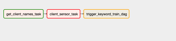 def get_client_names(**context): dir = r"../G2R12N-DAGS/keyword" files = os.listdir(dir) exclude = [ "keyword_train.py", "keyword_dag_dependency.py", "keyword_dag_dependency_test.py", ] clients = [] for file in files: if "keyword_" in file and file not in exclude: clients.append(file[8:-3]) print(file[8:-3])3. Clients yaml 파일을 이용한 전체 고객사 tasksensor 생성하기