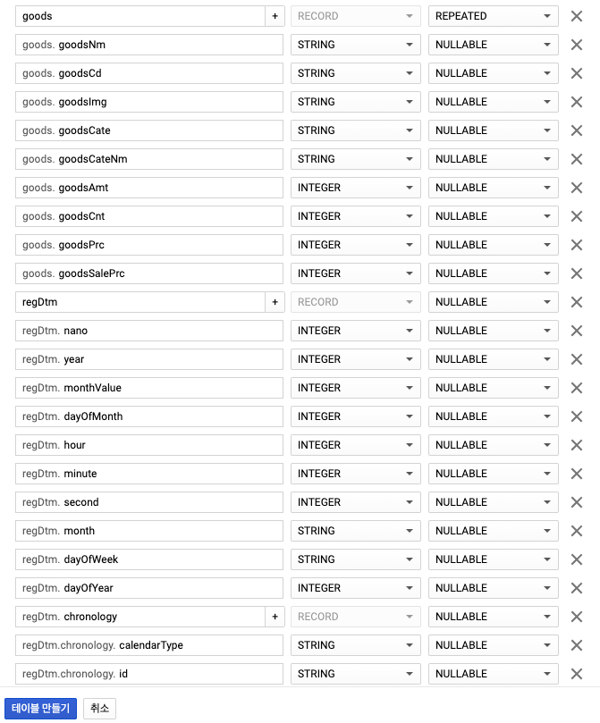 JSON 타입의 데이터를 BigQuery에 적재하려고 할 때 각 필드별 데이터 타입에 맞춰 테이블 스키마를 설계해야 하는데,