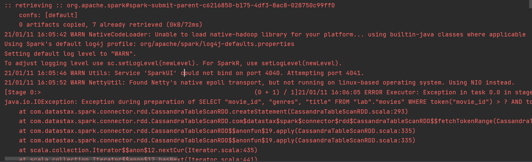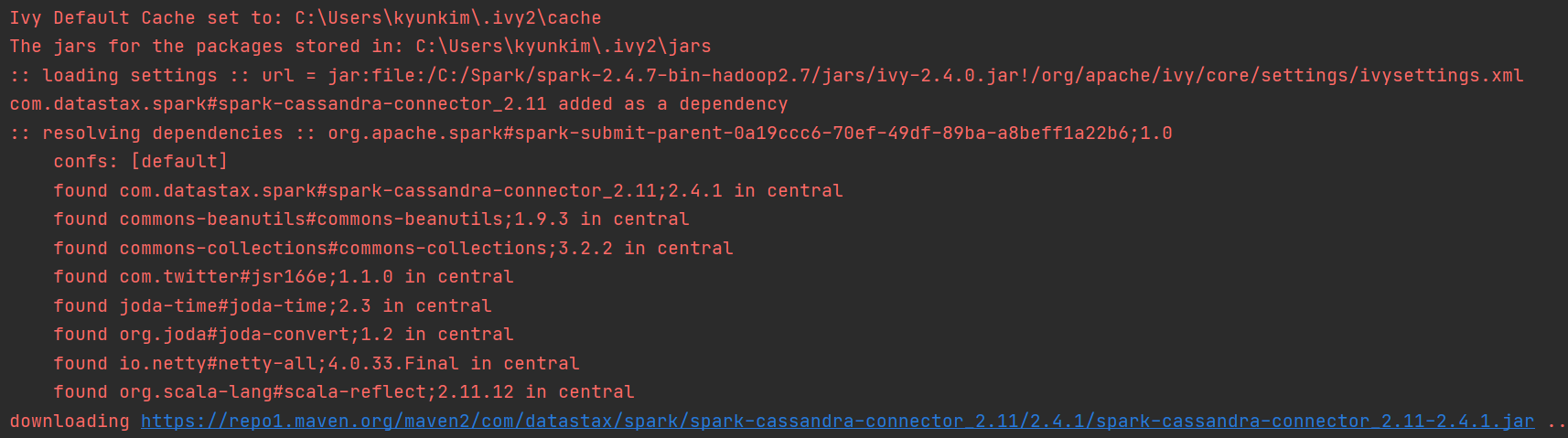 => 해결방법: 위에서 설정한 sparkspark-cassandra-connector 모듈 버전 변경하기